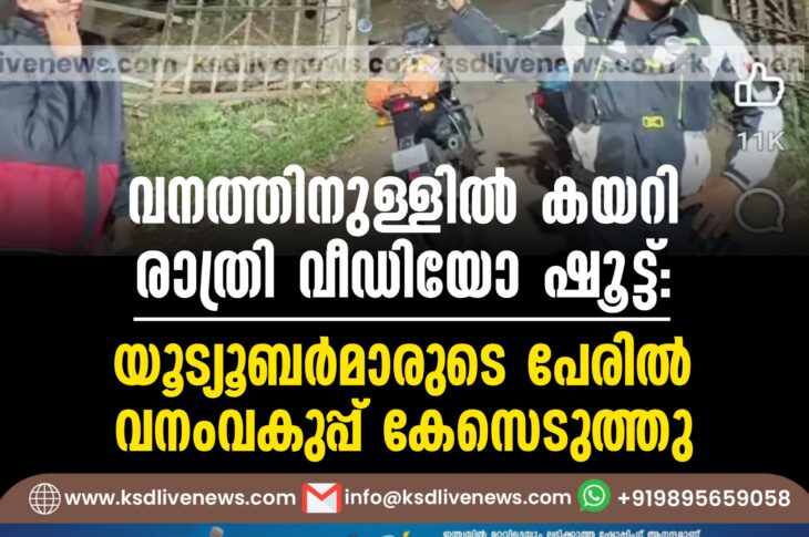 കേരളം വനത്തിനുള്ളിൽ കയറി രാത്രി വീഡിയോ ഷൂട്ട്: യൂട്യൂബർമാരുടെ പേരിൽ വനംവകുപ്പ് കേസെടുത്തുNovember 27, 2025