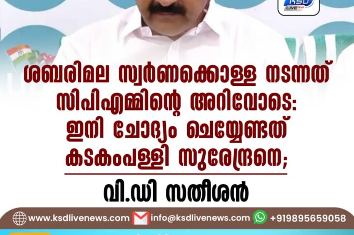 കേരളം ശബരിമല സ്വർണക്കൊള്ള നടന്നത് സിപിഎമ്മിന്റെ അറിവോടെ: ഇനി ചോദ്യം ചെയ്യേണ്ടത് കടകംപള്ളി സുരേന്ദ്രനെ; വി.ഡി സതീശൻNovember 20, 2025