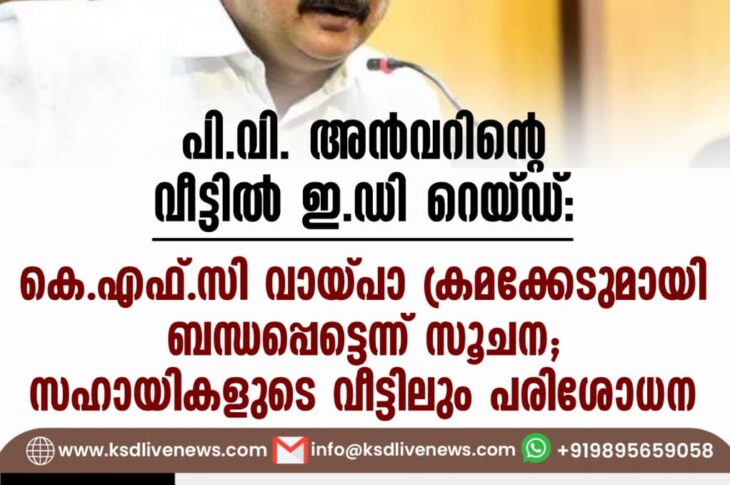 കേരളം പി.വി. അന്വറിന്റെ വീട്ടില് ഇ.ഡി റെയ്ഡ്: കെഎഫ്സി വായ്പാ ക്രമക്കേടുമായി ബന്ധപ്പെട്ടെന്ന് സൂചന; സഹായികളുടെ വീട്ടിലും പരിശോധനNovember 21, 2025