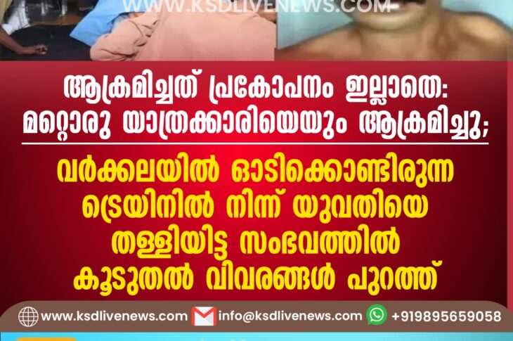 കേരളം ആക്രമിച്ചത് പ്രകോപനം ഇല്ലാതെ: മറ്റൊരു യാത്രക്കാരിയെയും ആക്രമിച്ചു; വർക്കലയില് ഓടിക്കൊണ്ടിരുന്ന ട്രെയിനില് നിന്ന് യുവതിയെ തള്ളിയിട്ട സംഭവത്തില് കൂടുതല് വിവരങ്ങള് പുറത്ത്November 3, 2025