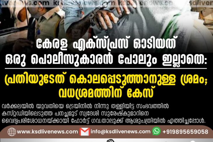 കേരളം കേരള എക്സ്പ്രസ് ഓടിയത് ഒരു പൊലീസുകാരൻ പോലും ഇല്ലാതെ: പ്രതിയുടേത് കൊലപ്പെടുത്താനുള്ള ശ്രമം; വധശ്രമത്തിന് കേസ്November 3, 2025