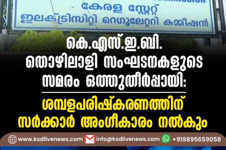 കേരളം കെ.എസ്.ഇ.ബി. തൊഴിലാളി സംഘടനകളുടെ സമരം ഒത്തുതീർപ്പായി: ശമ്പളപരിഷ്കരണത്തിന് സർക്കാർ അംഗീകാരം നൽകുംNovember 1, 2025
