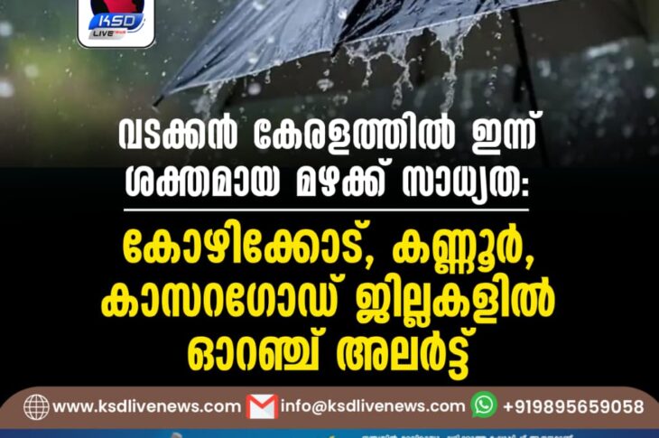 കേരളം വടക്കൻ കേരളത്തില് ഇന്ന് ശക്തമായ മഴക്ക് സാധ്യത; കോഴിക്കോട്, കണ്ണൂര്, കാസറഗോഡ് ജില്ലകളില് ഓറഞ്ച് അലര്ട്ട്October 27, 2025