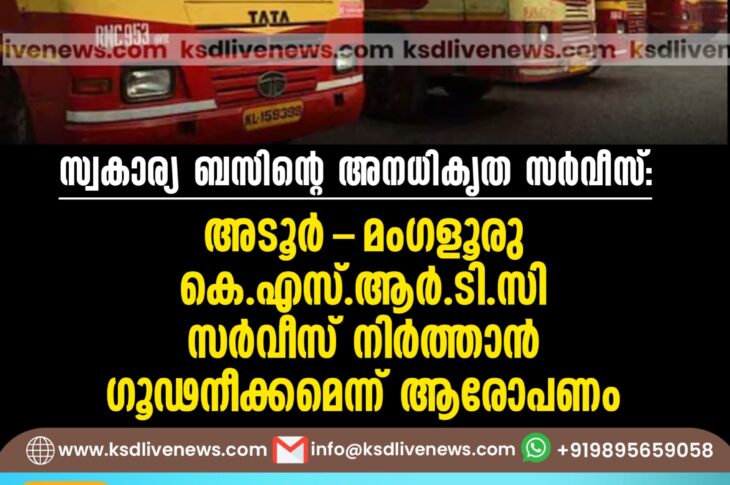 കേരളം സ്വകാര്യ ബസിന്റെ അനധികൃത സർവീസ്: അടൂർ-മംഗളൂരു കെഎസ്ആർടിസി സർവീസ് നിർത്താൻ ഗൂഢനീക്കമെന്ന് ആരോപണംOctober 13, 2025