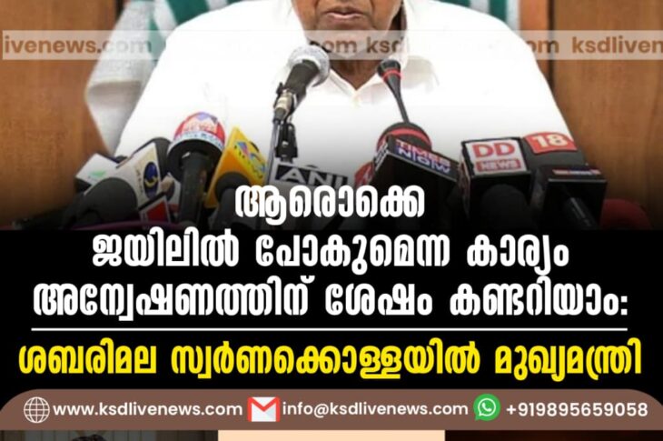കേരളം ആരൊക്കെ ജയിലില് പോകുമെന്ന കാര്യം അന്വേഷണത്തിന് ശേഷം കണ്ടറിയാം’; ശബരിമല സ്വര്ണക്കൊള്ളയില് മുഖ്യമന്ത്രിOctober 13, 2025