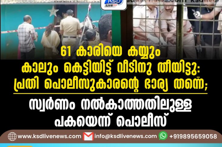 കേരളം 61കാരിയെ കയ്യും കാലും കെട്ടിയിട്ട് വീടിനു തീയിട്ടു: പ്രതി പൊലീസുകാരന്റെ ഭാര്യ തന്നെ; സ്വര്ണം നല്കാത്തതിലുള്ള പകയെന്ന് പൊലീസ്October 11, 2025