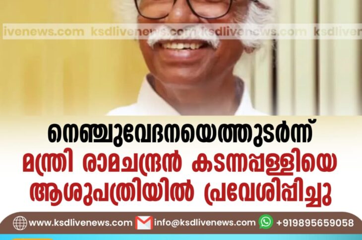കേരളം നെഞ്ചുവേദനയെത്തുടര്ന്ന് മന്ത്രി രാമചന്ദ്രന് കടന്നപ്പള്ളിയെ ആശുപത്രിയില് പ്രവേശിപ്പിച്ചുOctober 11, 2025