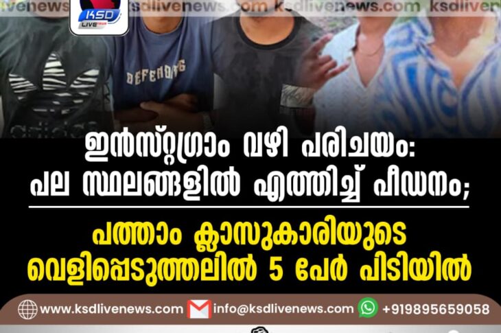 കേരളം ഇൻസ്റ്റഗ്രാം വഴി പരിചയം: പല സ്ഥലങ്ങളിൽ എത്തിച്ച് പീഡനം; പത്താം ക്ലാസുകാരിയുടെ വെളിപ്പെടുത്തലിൽ 5 പേർ പിടിയിൽOctober 9, 2025