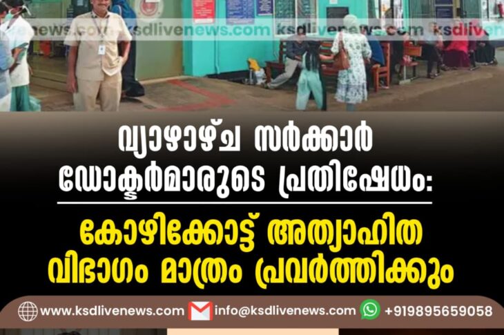 കേരളം വ്യാഴാഴ്ച സര്ക്കാര് ഡോക്ടര്മാരുടെ പ്രതിഷേധം: കോഴിക്കോട്ട് അത്യാഹിത വിഭാഗം മാത്രം പ്രവര്ത്തിക്കുംOctober 8, 2025