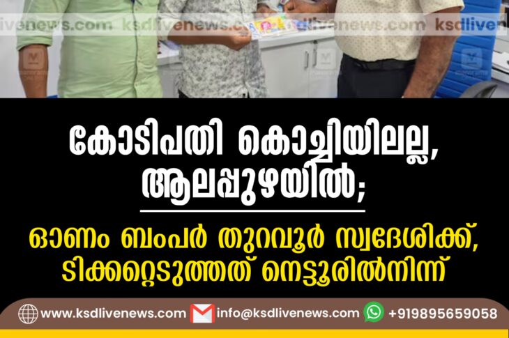 കേരളം കോടിപതി കൊച്ചിയിലല്ല, ആലപ്പുഴയിൽ; ഓണം ബംപർ തുറവൂർ സ്വദേശിക്ക്, ടിക്കറ്റെടുത്തത് നെട്ടൂരിൽനിന്ന്October 6, 2025