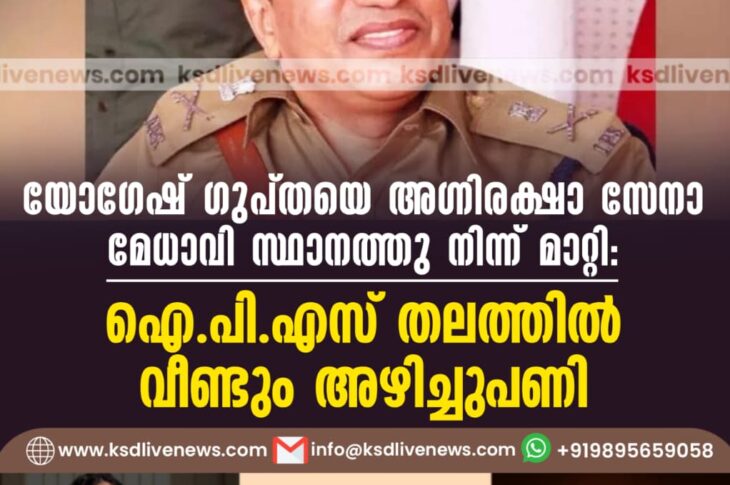 കേരളം യോഗേഷ് ഗുപ്തയെ അഗ്നിരക്ഷാ സേനാ മേധാവി സ്ഥാനത്തു നിന്ന് മാറ്റി: ഐ.പി.എസ് തലത്തില് വീണ്ടും അഴിച്ചുപണിSeptember 25, 2025