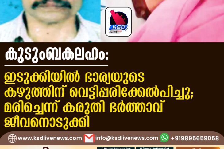കേരളം കുടുംബകലഹം: ഇടുക്കിയിൽ ഭാര്യയുടെ കഴുത്തിന് വെട്ടിപ്പരിക്കേല്പിച്ചു; മരിച്ചെന്ന് കരുതി ഭർത്താവ് ജീവനൊടുക്കിSeptember 9, 2025
