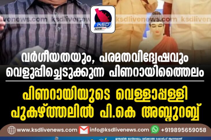 കേരളം ‘വര്ഗീയതയും, പരമതവിദ്വേഷവും വെളുപ്പിച്ചെടുക്കുന്ന പിണറായിത്തൈലം’: പിണറായിയുടെ വെള്ളാപ്പള്ളി പുകഴ്ത്തലില് പി.കെ അബ്ദുറബ്ബ്September 4, 2025