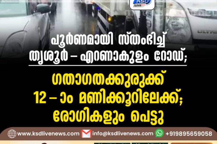 കേരളം പൂർണമായി സ്തംഭിച്ച് തൃശൂർ-എറണാകുളം റോഡ്; ഗതാഗതക്കുരുക്ക് 12-ാം മണിക്കൂറിലേക്ക്; രോഗികളും പെട്ടുAugust 16, 2025