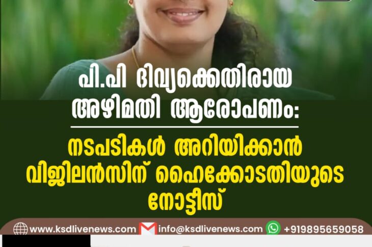 കേരളം പി.പി ദിവ്യക്കെതിരായ അഴിമതി ആരോപണം: നടപടികള് അറിയിക്കാൻ വിജിലൻസിന് ഹൈക്കോടതിയുടെ നോട്ടീസ്August 18, 2025