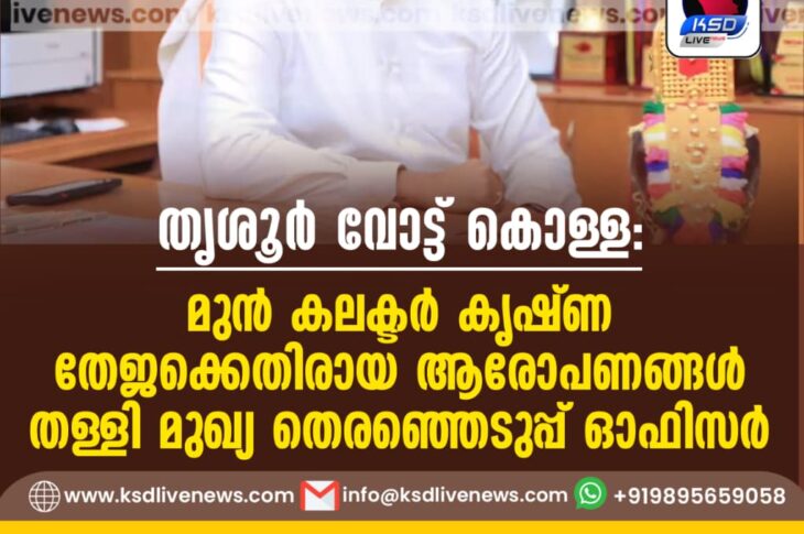 കേരളം തൃശൂർ വോട്ട് കൊള്ള: മുൻ കലക്ടർ കൃഷ്ണ തേജക്കെതിരായ ആരോപണങ്ങൾ തള്ളി മുഖ്യ തെരഞ്ഞെടുപ്പ് ഓഫിസർAugust 18, 2025