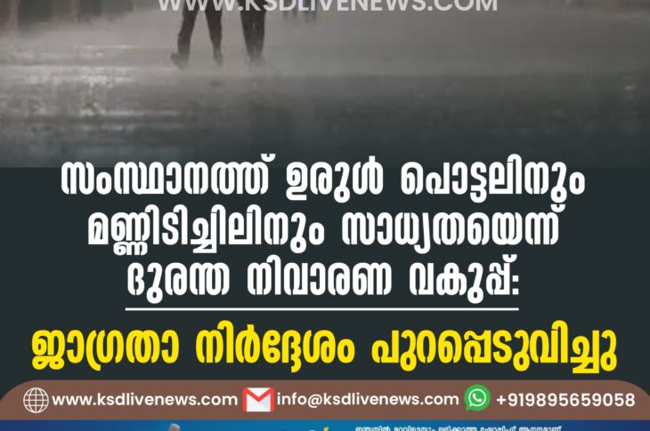കേരളം സംസ്ഥാനത്ത് ഉരുള് പൊട്ടലിനും മണ്ണിടിച്ചിലിനും സാധ്യതയെന്ന് ദുരന്ത നിവാരണ വകുപ്പ്; ജാഗ്രതാ നിര്ദ്ദേശം പുറപ്പെടുവിച്ചുAugust 4, 2025