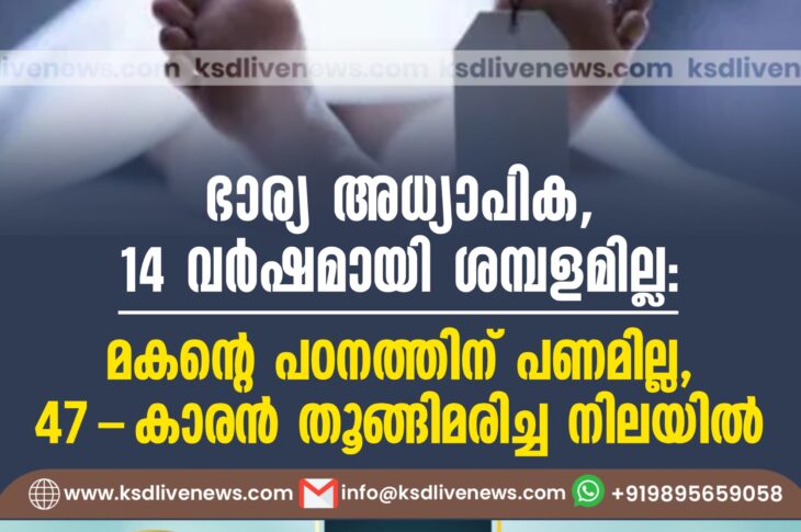 കേരളം ഭാര്യ അധ്യാപിക, 14 വർഷമായി ശമ്പളമില്ല; മകന്റെ പഠനത്തിന് പണമില്ല, 47-കാരൻ തൂങ്ങിമരിച്ച നിലയിൽAugust 4, 2025
