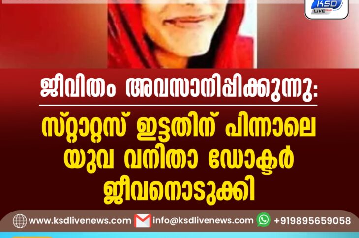കേരളം ജീവിതം അവസാനിപ്പിക്കുന്നു’; സ്റ്റാറ്റസ് ഇട്ടതിന് പിന്നാലെ യുവ വനിതാ ഡോക്ടര് ജീവനൊടുക്കിJuly 22, 2025