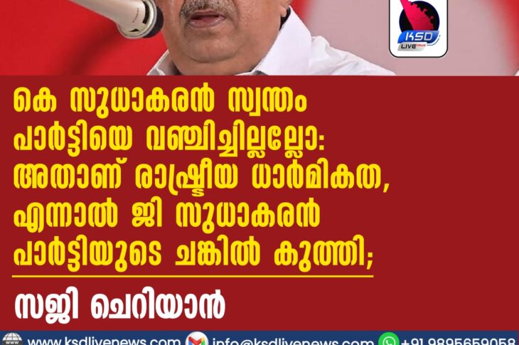 കേരളം കെ സുധാകരന് സ്വന്തം പാര്ട്ടിയെ വഞ്ചിച്ചില്ലല്ലോ: അതാണ് രാഷ്ട്രീയ ധാര്മികത, എന്നാല് ജി സുധാകരന് പാര്ട്ടിയുടെ ചങ്കില് കുത്തി; സജി ചെറിയാന്March 21, 2026