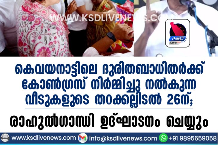 കേരളം വയനാട്ടിലെ ദുരിതബാധിതർക്ക് കോൺഗ്രസ് നിർമ്മിച്ചു നൽകുന്ന വീടുകളുടെ തറക്കല്ലിടൽ 26ന്; രാഹുൽഗാന്ധി ഉദ്ഘാടനം ചെയ്യുംFebruary 19, 2026