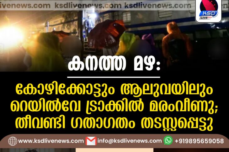 കേരളം കനത്ത മഴ: കോഴിക്കോട്ടും ആലുവയിലും റെയിൽവേ ട്രാക്കിൽ മരംവീണു; തീവണ്ടി ഗതാഗതം തടസ്സപ്പെട്ടുMay 26, 2025