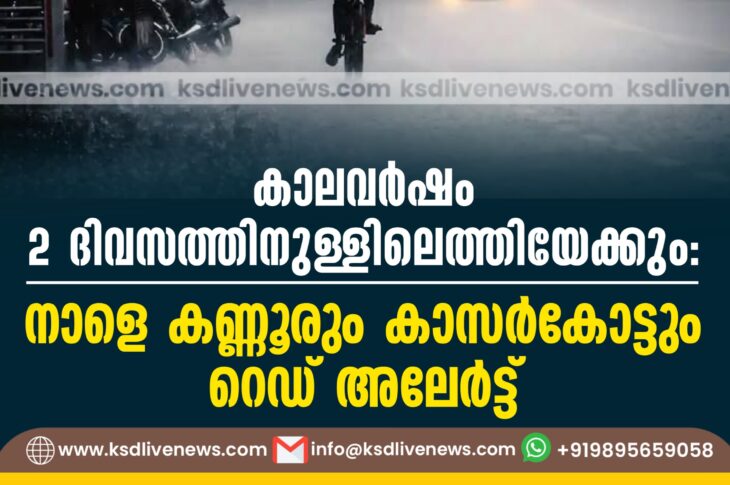 കേരളം കാലവര്ഷം 2 ദിവസത്തിനുള്ളിലെത്തിയേക്കും; നാളെ കണ്ണൂരും കാസര്കോട്ടും റെഡ് അലേര്ട്ട് May 23, 2025