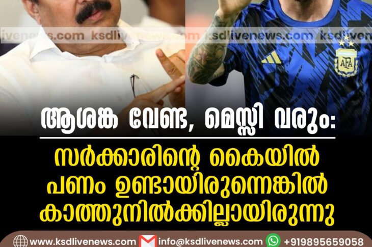 കേരളം ആശങ്ക വേണ്ട, മെസ്സി വരും: സര്ക്കാരിന്റെ കൈയില് പണം ഉണ്ടായിരുന്നെങ്കിൽ കാത്തുനില്ക്കില്ലായിരുന്നുMay 17, 2025