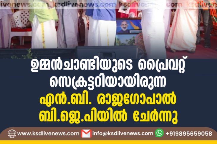 കേരളം ഉമ്മന്ചാണ്ടിയുടെ പ്രൈവറ്റ് സെക്രട്ടറിയായിരുന്ന എന്.ബി. രാജഗോപാല് ബിജെപിയില് ചേര്ന്നുMay 6, 2025