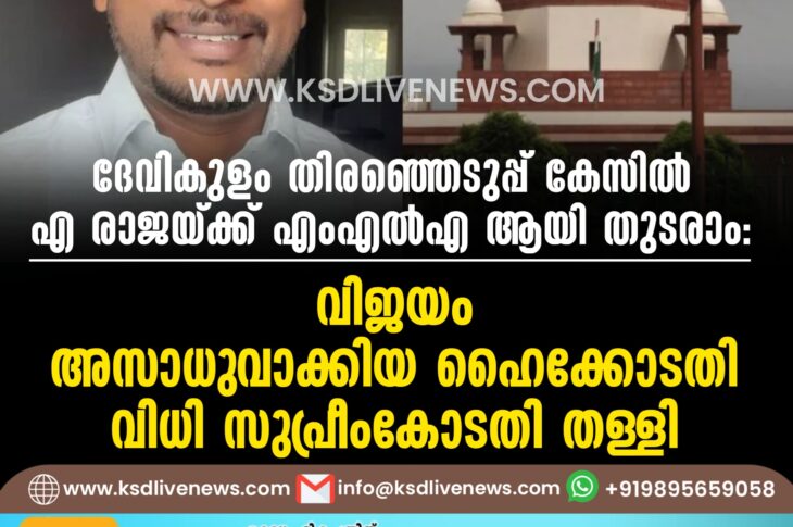 കേരളം ദേവികുളം തിരഞ്ഞെടുപ്പ് കേസിൽ എ. രാജയ്ക്ക് എംഎൽഎ ആയി തുടരാം: വിജയം അസാധുവാക്കിയ ഹൈക്കോടതി വിധി സുപ്രീംകോടതി തള്ളിMay 6, 2025
