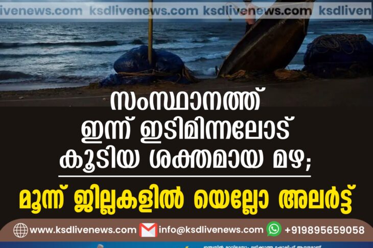 കേരളം സംസ്ഥാനത്ത് ഇന്ന് ഇടിമിന്നലോട് കൂടിയ ശക്തമായ മഴ, മൂന്ന് ജില്ലകളില് യെല്ലോ അലര്ട്ട്April 11, 2025