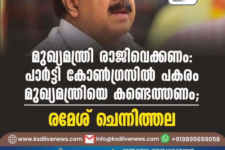 കേരളം മുഖ്യമന്ത്രി രാജിവെക്കണം: പാര്ട്ടി കോണ്ഗ്രസില് പകരം മുഖ്യമന്ത്രിയെ കണ്ടെത്തണം; രമേശ് ചെന്നിത്തലApril 3, 2025