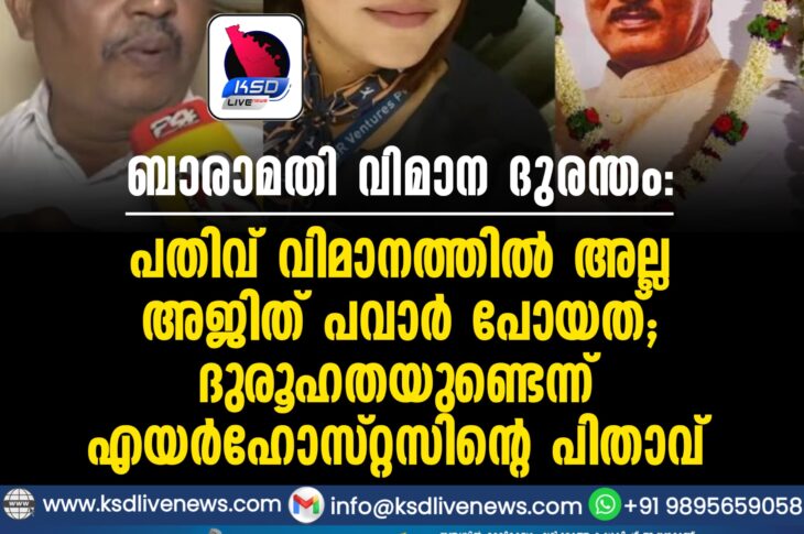 കേരളം ബാരാമതി വിമാന ദുരന്തം; ‘പതിവ് വിമാനത്തിൽ അല്ല അജിത് പവാർ പോയത്’; ദുരൂഹതയുണ്ടെന്ന് എയർഹോസ്റ്റസിന്റെ പിതാവ്February 12, 2026