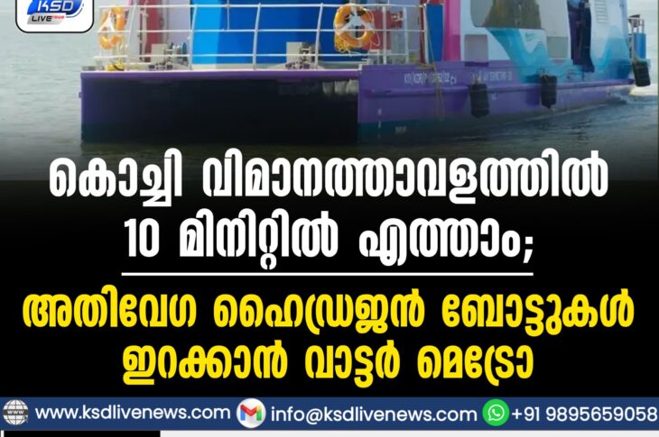 കേരളം കൊച്ചി വിമാനത്താവളത്തില് 10 മിനിറ്റില് എത്താം: അതിവേഗ ഹൈഡ്രജന് ബോട്ടുകള് ഇറക്കാന് വാട്ടര് മെട്രോFebruary 12, 2026