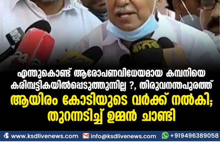 കേരളം എന്തുകൊണ്ട് ആരോപണവിധേയമായ കമ്പനിയെ കരിമ്പട്ടികയിൽപ്പെടുത്തുന്നില്ല ?, തിരുവനന്തപുരത്ത് ആയിരം കോടിയുടെ വർക്ക് നൽകി ; തുറന്നടിച്ച് ഉമ്മൻ ചാണ്ടിNovember 18, 2020