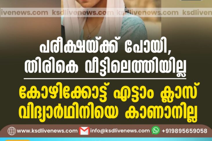 കേരളം പരീക്ഷയ്ക്ക് പോയി, തിരികെ വീട്ടിലെത്തിയില്ല; കോഴിക്കോട്ട് എട്ടാം ക്ലാസ് വിദ്യാർഥിനിയെ കാണാനില്ലMarch 15, 2025