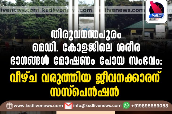 കേരളം തിരുവനന്തപുരം മെഡി. കോളജിലെ ശരീര ഭാഗങ്ങൾ മോഷണം പോയ സംഭവം: വീഴ്ച വരുത്തിയ ജീവനക്കാരന് സസ്പെൻഷൻMarch 15, 2025