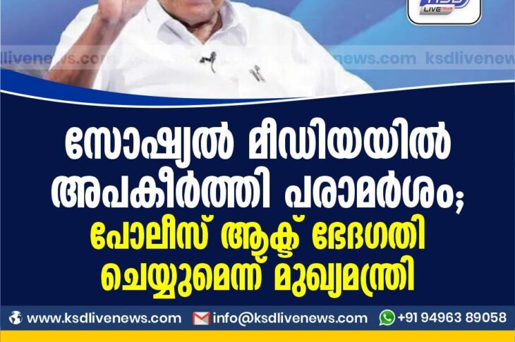 കേരളം സോഷ്യൽ മീഡിയയിൽ അപകീർത്തി പരാമർശം ; പോലീസ് ആക്ട് ഭേദഗതി ചെയ്യുമെന്ന് മുഖ്യമന്ത്രിNovember 1, 2020