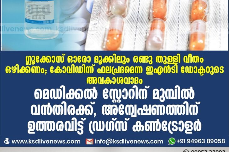 കേരളം ഗ്ലൂക്കോസ് ഓരോ മൂക്കിലും രണ്ടു തുള്ളി വീതം ഒഴിക്കണം ; കോവിഡിന്ന് ഫലപ്രദമെന്ന ഇഎൻടി ഡോക്ടറുടെ അവകാശവാദം ; മെഡിക്കൽ സ്റ്റോറിന് മുമ്പിൽ വൻതിരക്ക് , അന്വേഷണത്തിന് ഉത്തരവിട്ട് ഡ്രഗ്സ് കൺട്രോളർOctober 20, 2020