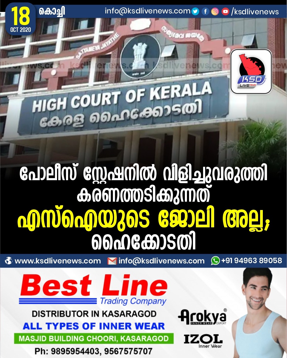 കേരളം പോലീസ് സ്റ്റേഷനിൽ വിളിച്ചുവരുത്തി കരണത്തടിക്കുന്നത് എസ്ഐയുടെ ജോലി അല്ല ; ഹൈക്കോടതിOctober 18, 2020