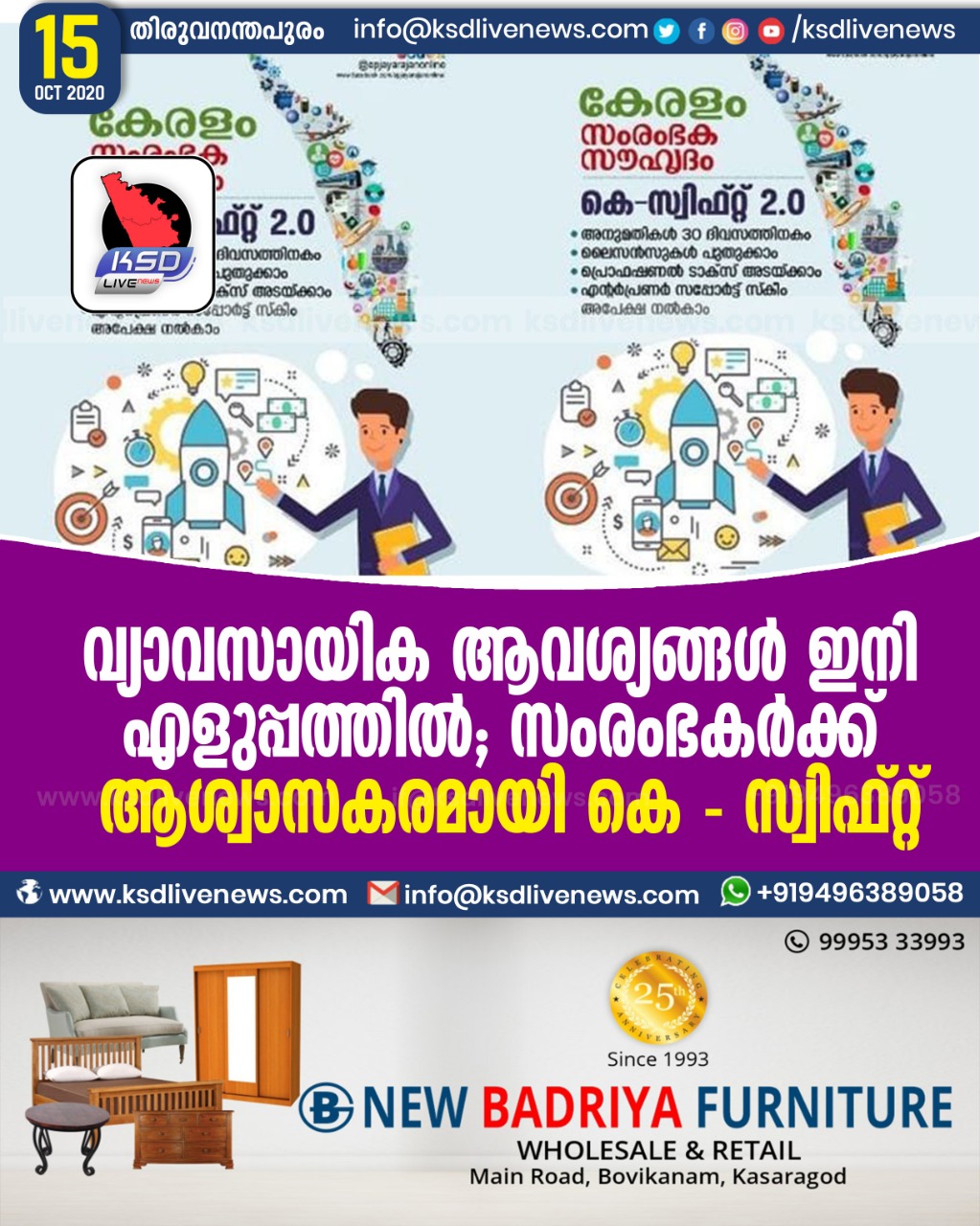 കേരളം വ്യാവസായിക ആവശ്യങ്ങൾ ഇനി എളുപ്പത്തിൽ ; സംരംഭകർക്ക് ആശ്വാസകരമായി കെ – സ്വിഫ്റ്റ്October 15, 2020