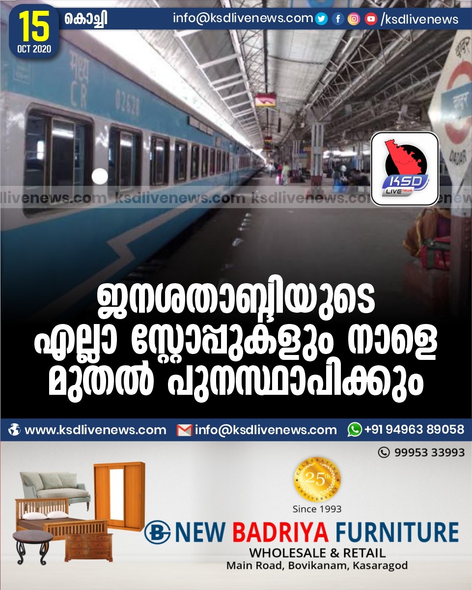 ജനശതാബ്ദിയുടെ എല്ലാ സ്റ്റോപ്പുകളും നാളെ മുതൽ പുനസ്ഥാപിക്കും