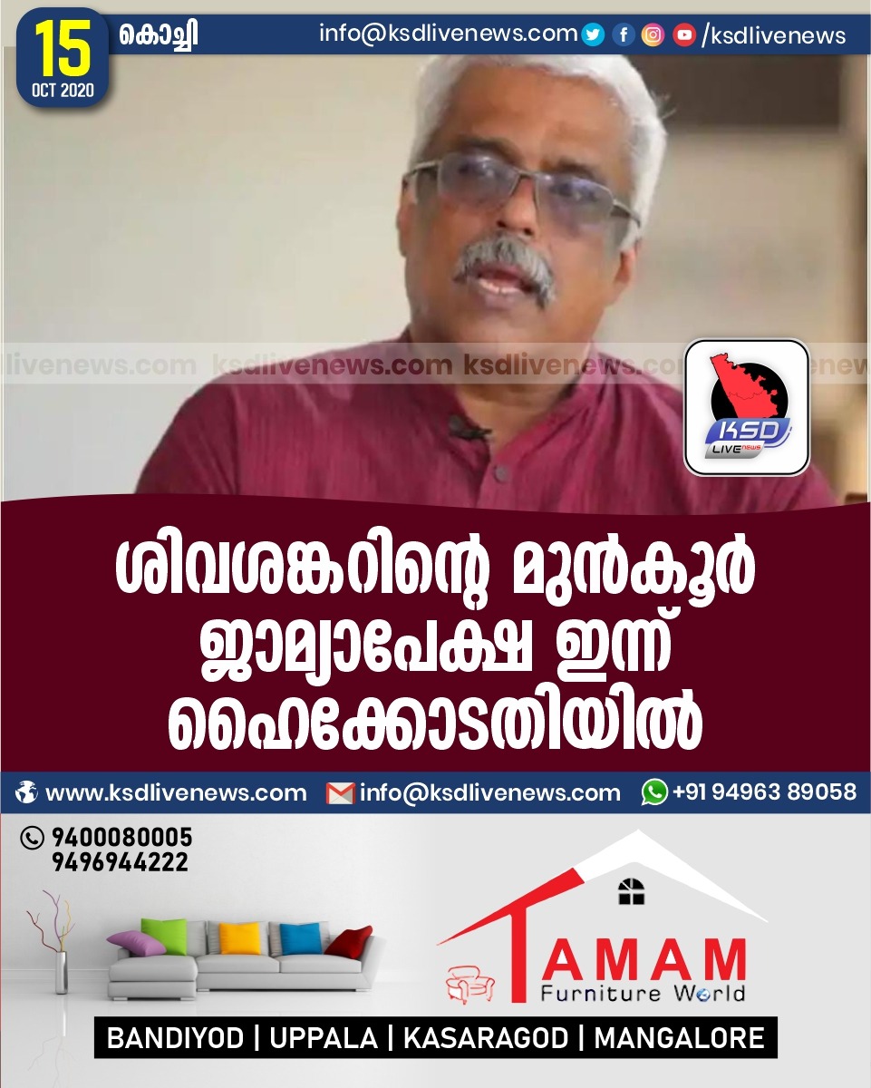 ശിവശങ്കറിന്റെ മുൻകൂർ ജാമ്യാപേക്ഷ ഇന്ന് ഹൈക്കോടതിയിൽ