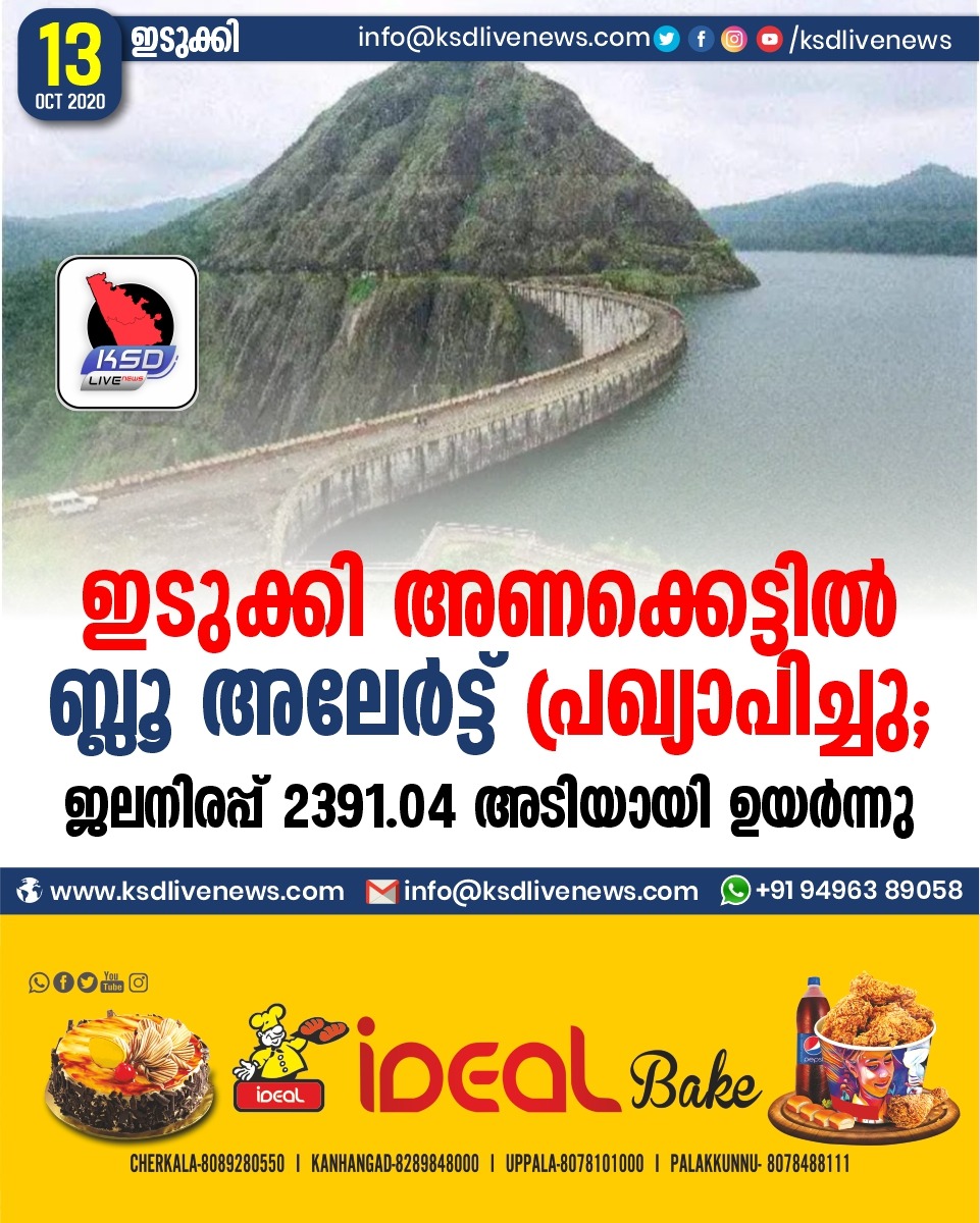 കേരളം ഇടുക്കി അണക്കെട്ടിൽ ബ്ലൂ അലേർട്ട് പ്രഖ്യാപിച്ചു ; ജലനിരപ്പ് 2391.04 അടിയായി ഉയർന്നുOctober 13, 2020