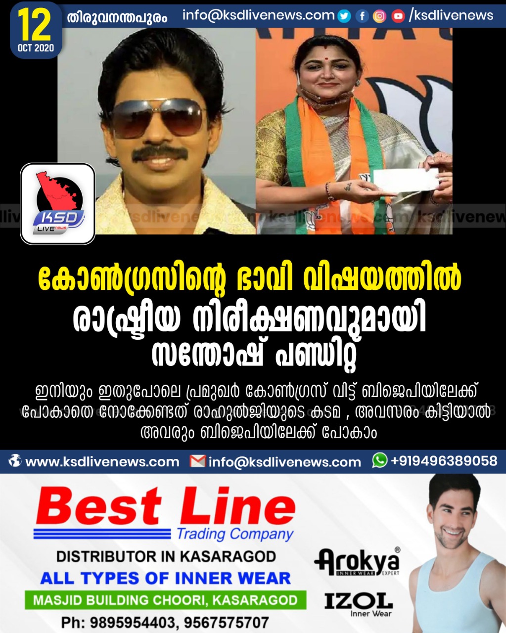 കോൺഗ്രസിന്റെ ഭാവി വിഷയത്തിൽ രാഷ്ട്രീയ നിരീക്ഷണവുമായി സന്തോഷ് പണ്ഡിറ്റ്