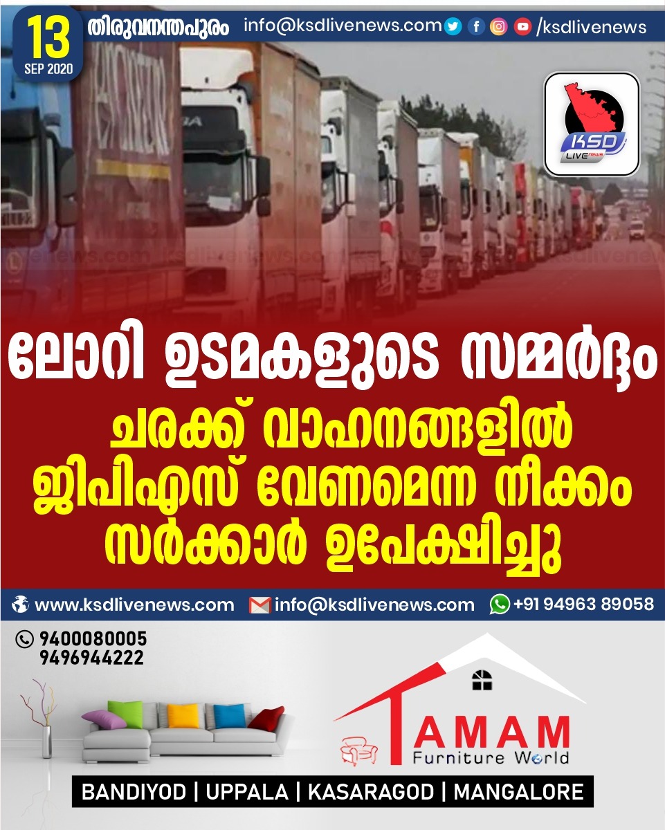 കേരളം ലോറി ഉടമകളുടെ സമ്മർദ്ദം ; ചരക്ക് വാഹനങ്ങളിൽ ജിപിഎസ് വേണമെന്ന നീക്കം സർക്കാർ ഉപേക്ഷിച്ചുSeptember 13, 2020