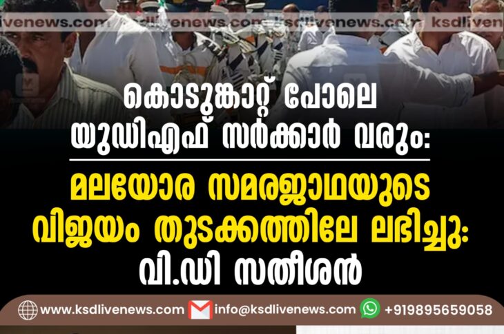 കേരളം കൊടുങ്കാറ്റ് പോലെ യുഡിഎഫ് സർക്കാർ വരും; മലയോര സമരജാഥയുടെ വിജയം തുടക്കത്തിലേ ലഭിച്ചു: വിഡി സതീശൻFebruary 4, 2025