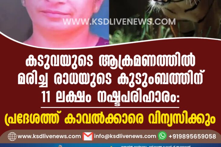കേരളം കടുവയുടെ ആക്രമണത്തില് മരിച്ച രാധയുടെ കുടുംബത്തിന് 11ലക്ഷം നഷ്ടപരിഹാരം: പ്രദേശത്ത് കാവല്ക്കാരെ വിന്യസിക്കുംJanuary 24, 2025