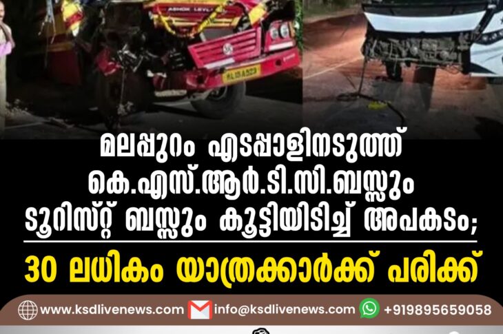 കേരളം മലപ്പുറം എടപ്പാളിനടുത്ത് കെ.എസ്.ആര്.ടി.സി.ബസ്സും ടൂറിസ്റ്റ് ബസ്സും കൂട്ടിയിടിച്ച് അപകടം; 30 ലധികം യാത്രക്കാര്ക്ക് പരിക്ക്January 21, 2025