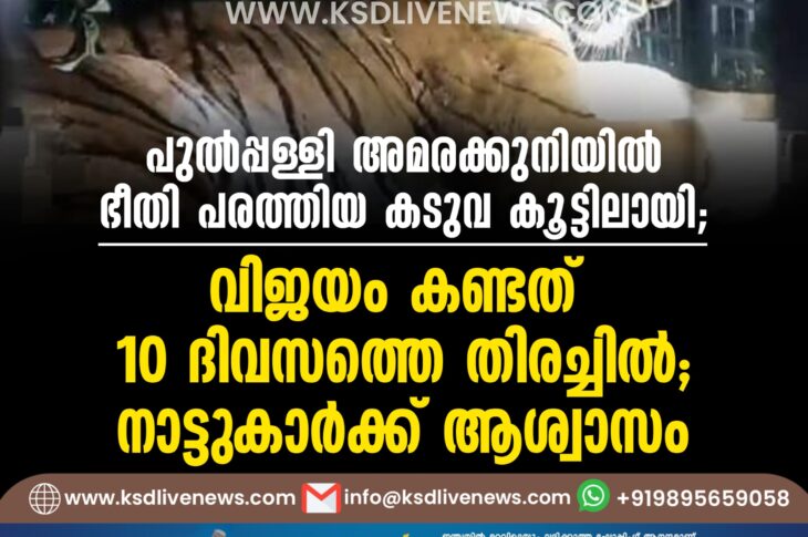 കേരളം പുൽപ്പള്ളി അമരക്കുനിയിൽ ഭീതി പരത്തിയ കടുവ കൂട്ടിലായി; വിജയം കണ്ടത് 10 ദിവസത്തെ തിരച്ചിൽ, നാട്ടുകാർക്ക് ആശ്വാസംJanuary 17, 2025